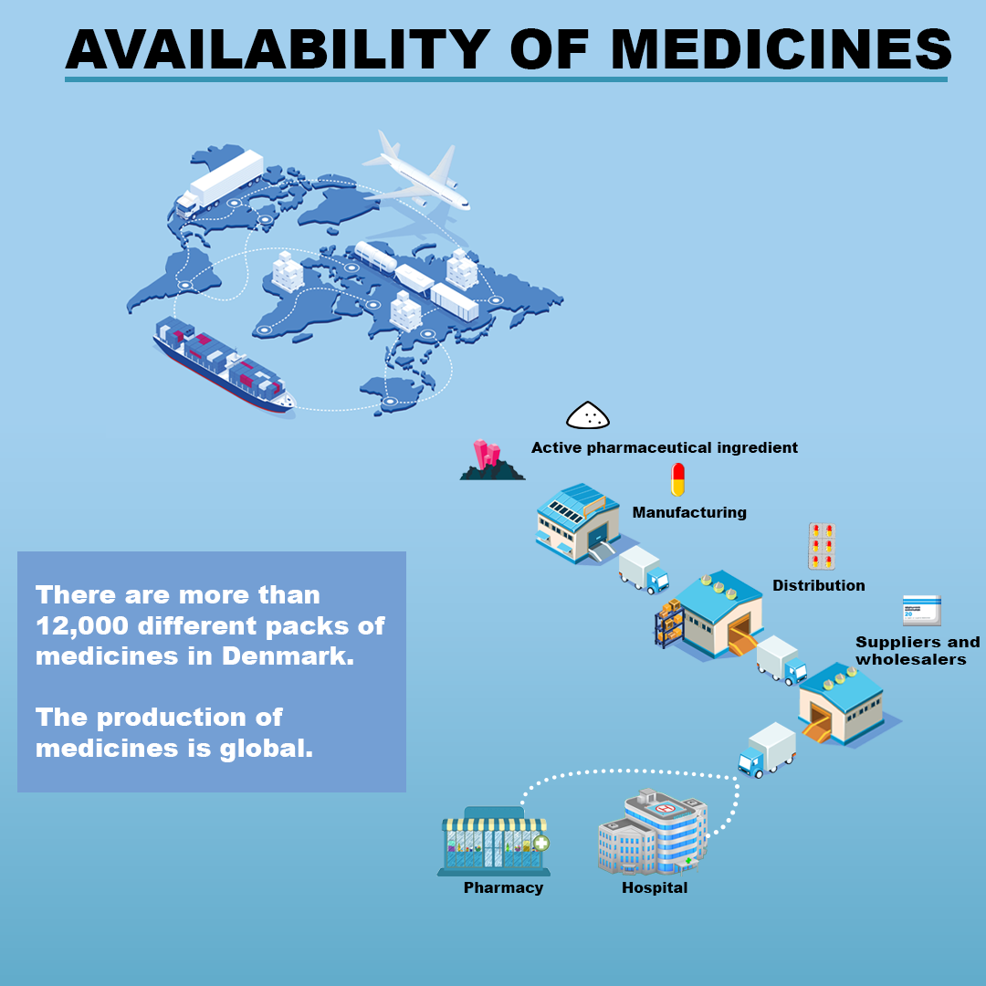Denmark generally has a high security of supply in the pharmaceutical area, and people living in Denmark can usually get their prescribed medicines at the pharmacy.